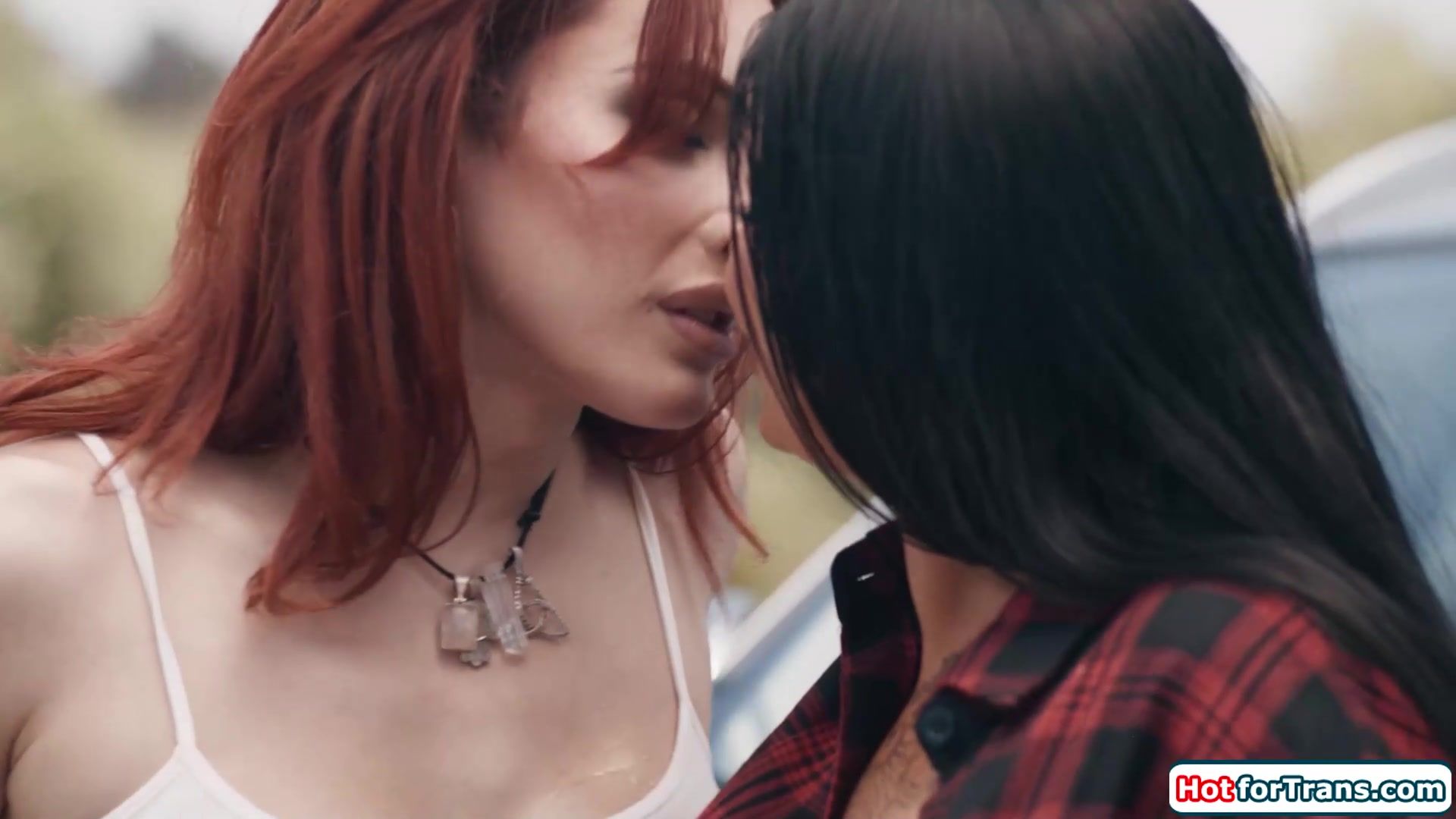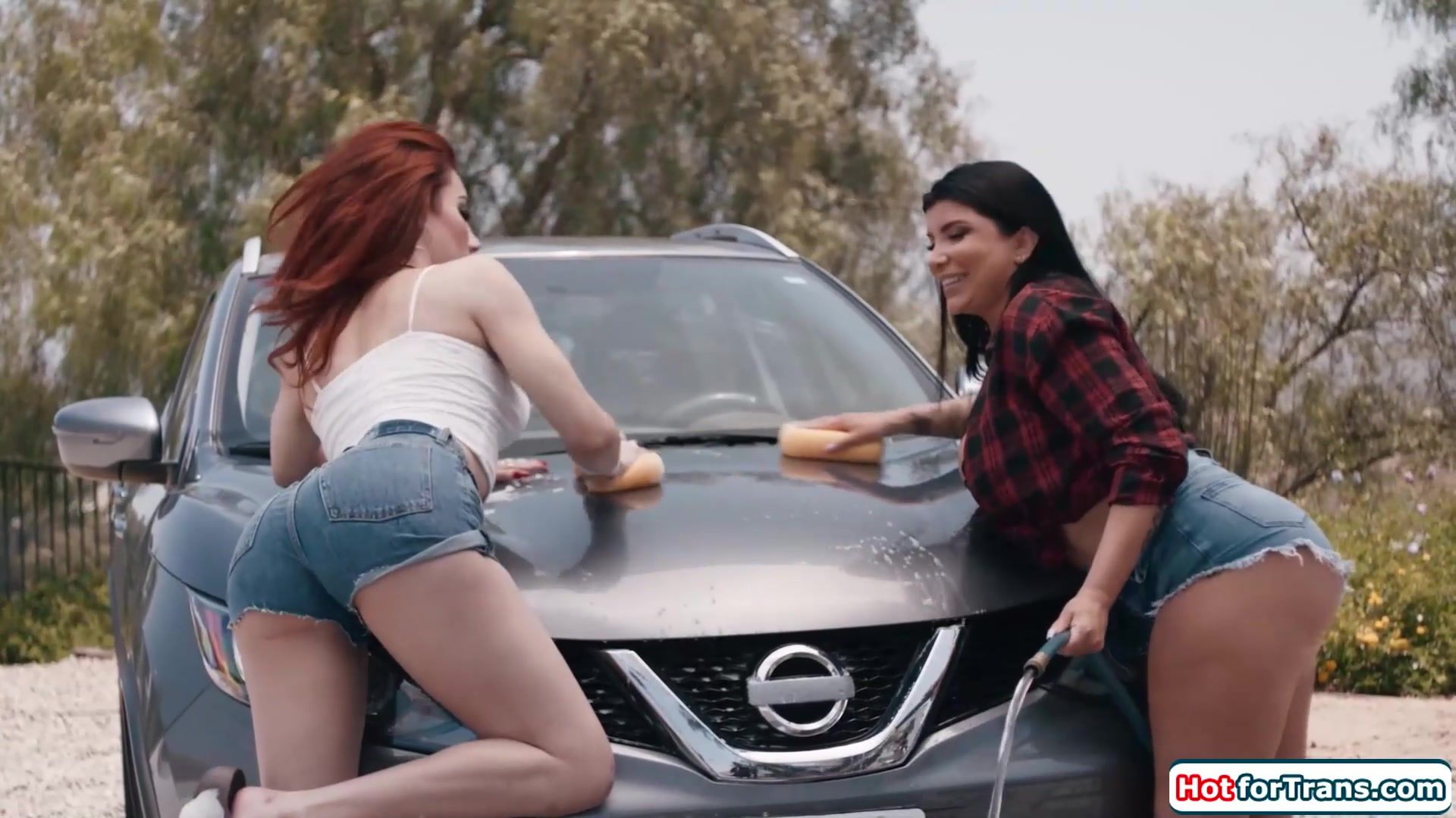 Busty tgirl Ariel Demure got hard and horny from a sexy carwash with big tits gf Romi Rain.Inside the shemale receives a deepthroat blowjob.The redhead latina trans licks the tattooed milfs shaved pussy and bangs her with her big tranny cock