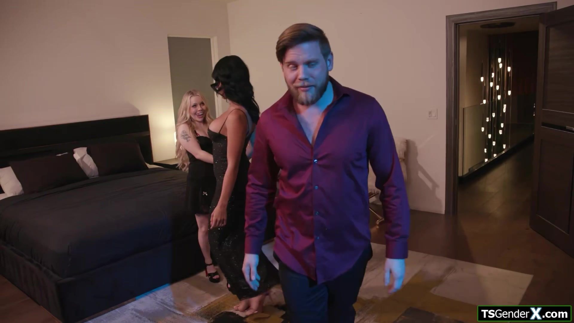 Haley Spades really wants to see her bf suck off her busty shemale friend Avery Lusts cock.The big tits tgirl teams up with her for a double blowjob.The guy deepthroats the trans babes dick and bareback anal fucks the tranny who licks her gfs pussy