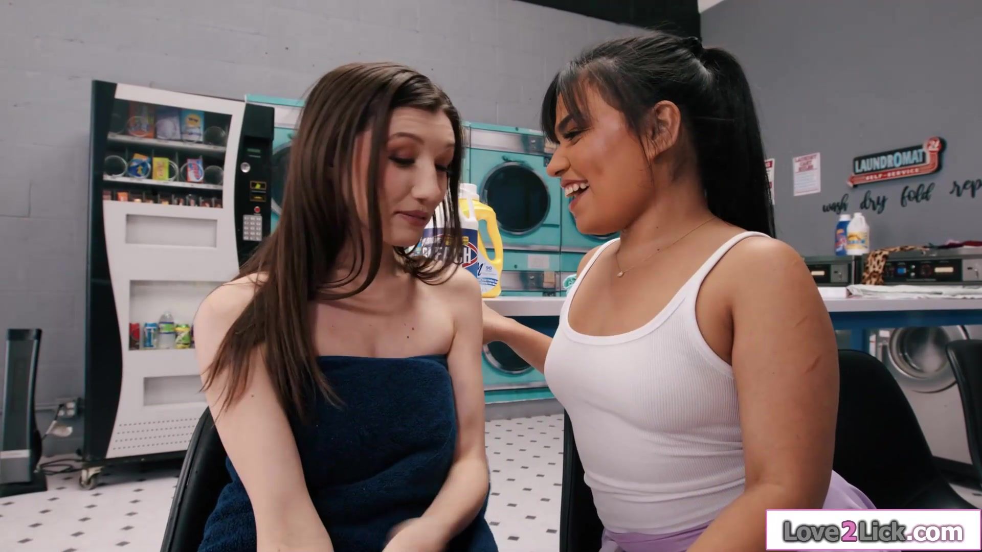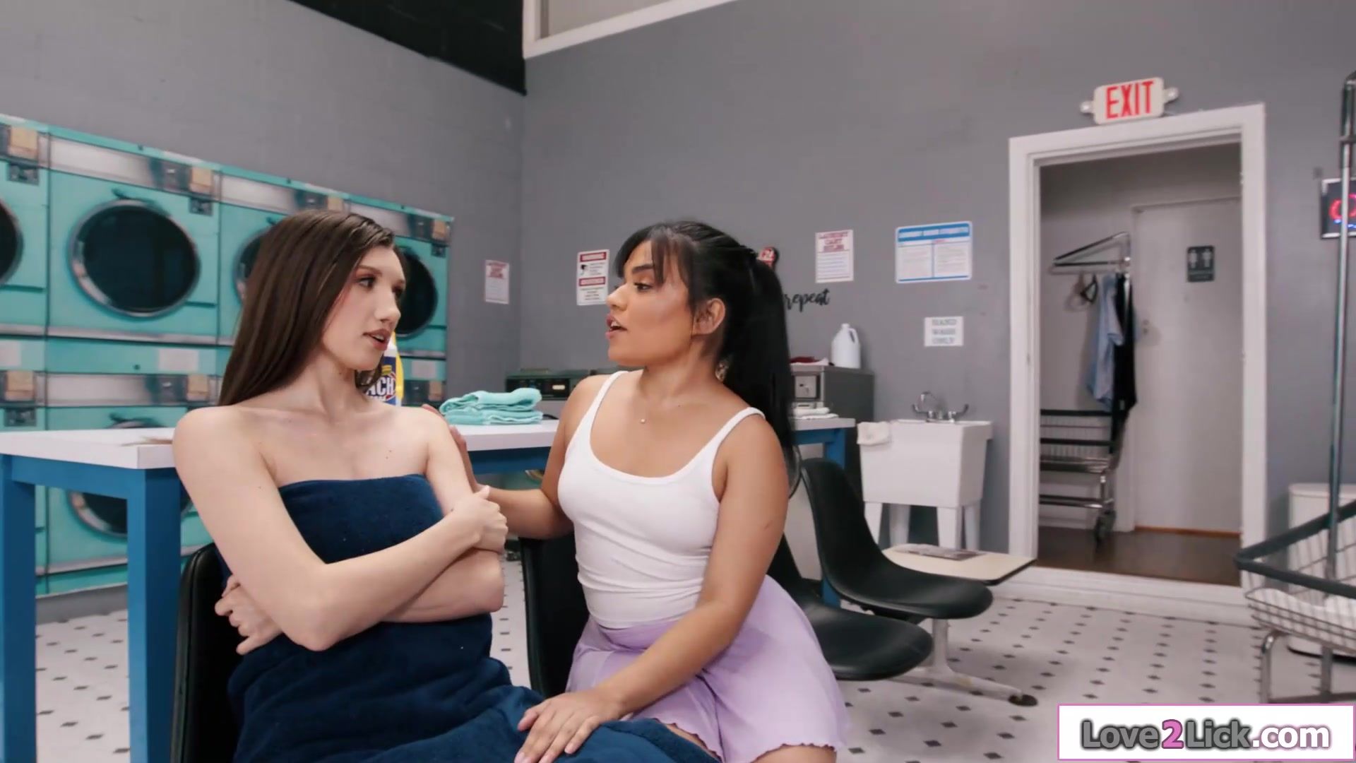 Lesbians Maya Woulfe n Summer Col lick at public laundromat